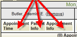 SchAppointment Title Color Background color of the 1 ^st line of the appointment – the "title" showing pt. name, DOB, time.